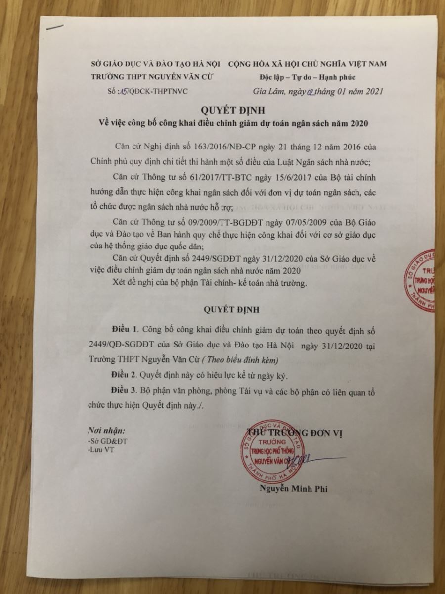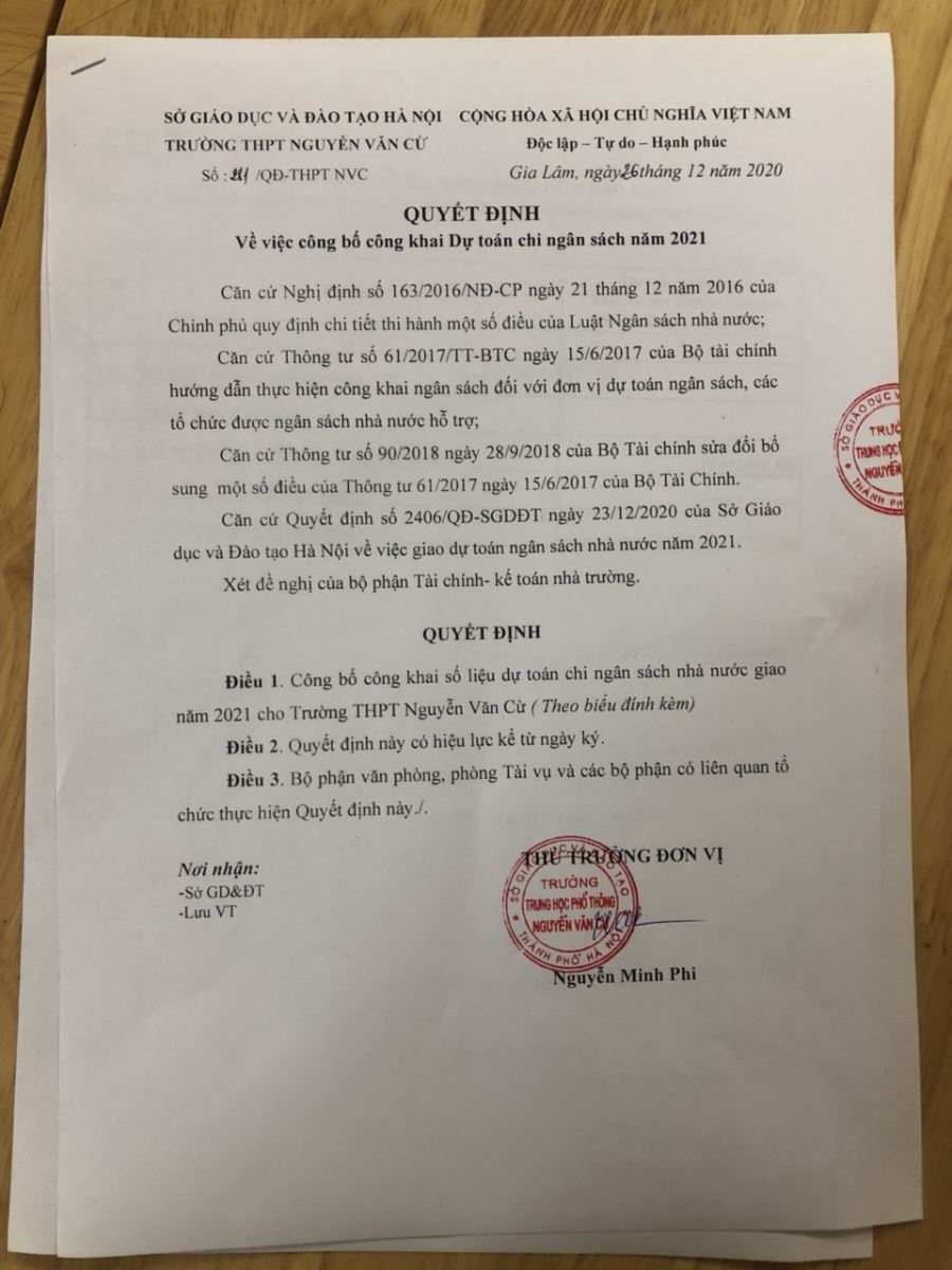 • Công khai tài chính theo quyết đinh của UBND TP Hà Nội