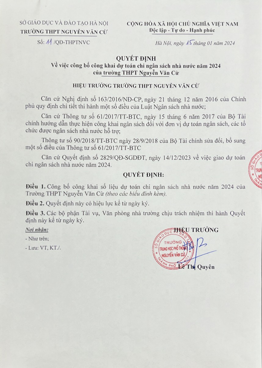 • Công khai tài chính theo quyết đinh của UBND TP Hà Nội