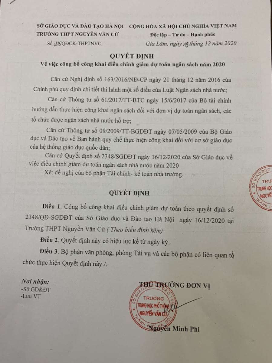 • Công khai tài chính theo quyết đinh của UBND TP Hà Nội