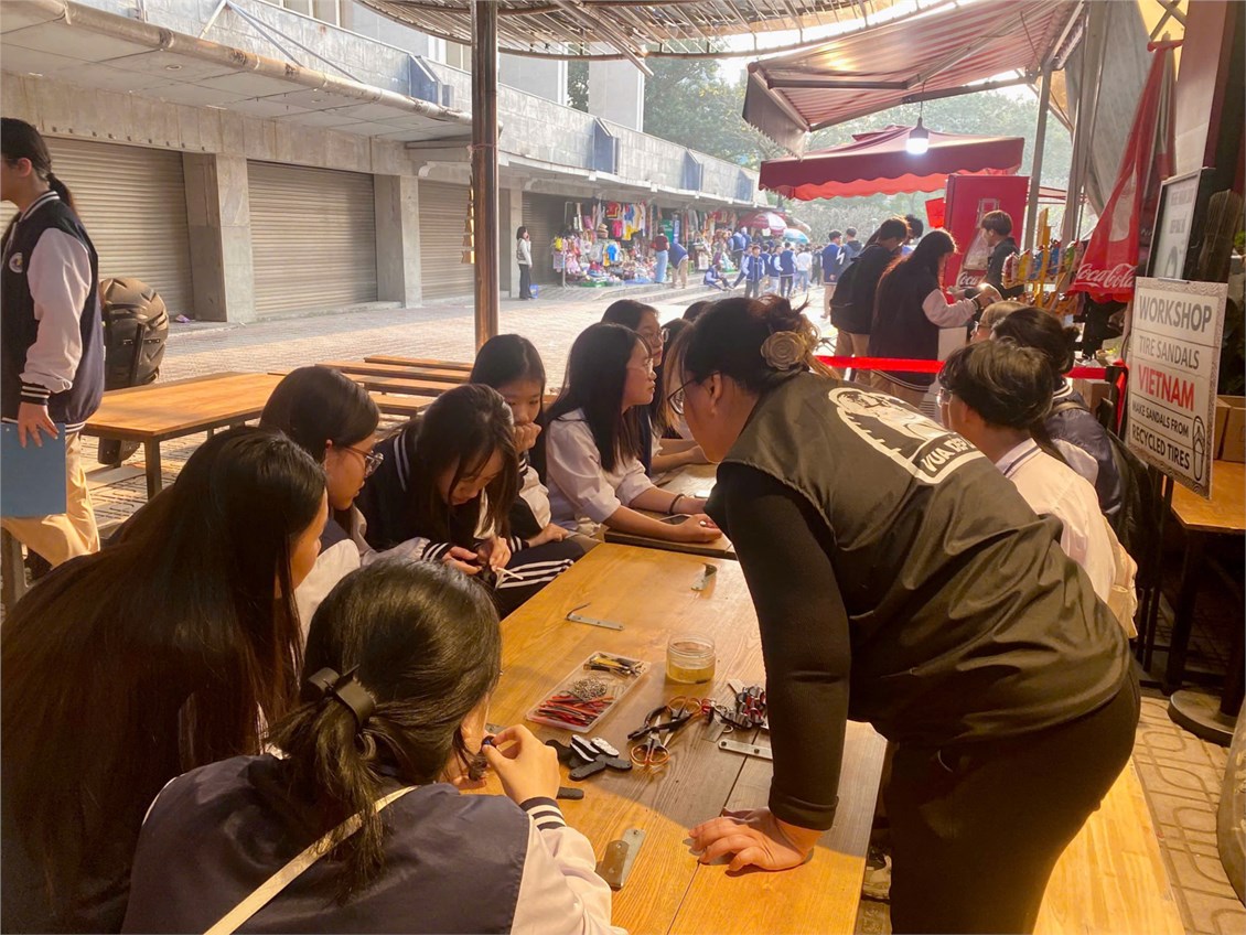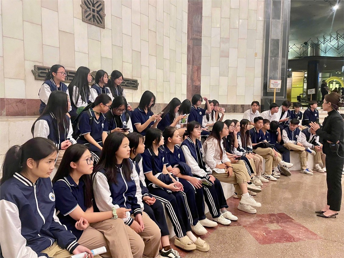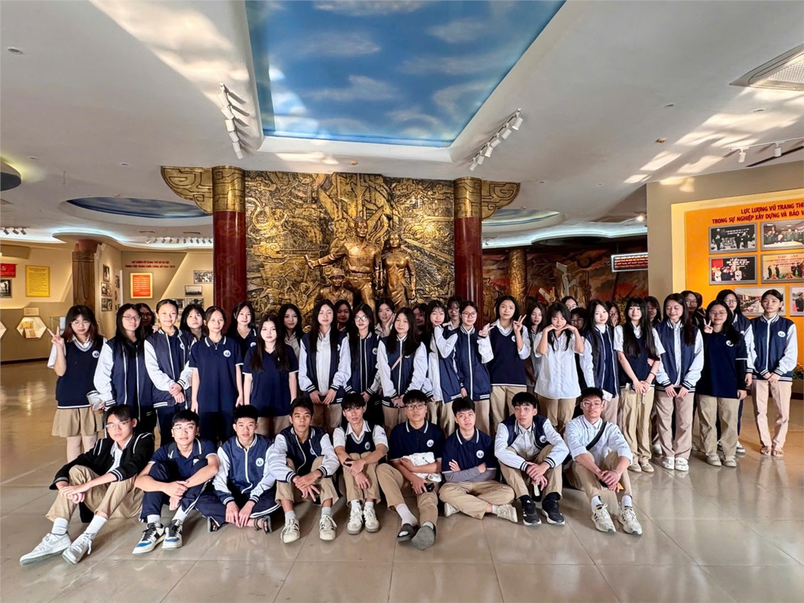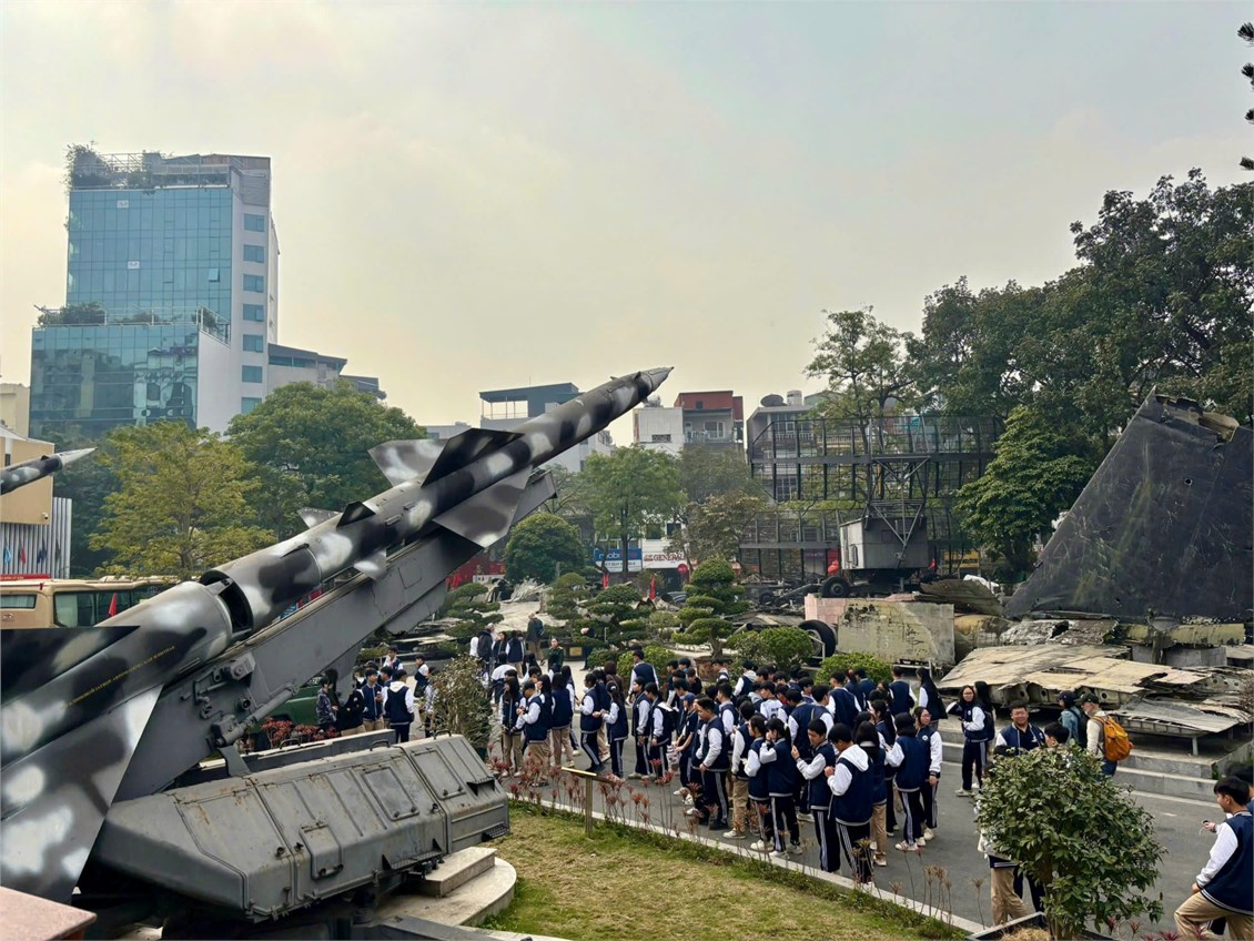 Với chủ đề "Quân đội của nhân dân", team Khối 11 đã "đổ bộ" xuống Bảo tàng Lịch sử Quân sự Việt Nam (cơ sở mới tại Tây Mỗ, Hà Nội). Không gian bảo tàng thực sự rất choáng ngợp! Các em học sinh đã đi từ ngạc nhiên này đến thán phục khác khi chứng kiến khu trưng bày ngoài trời với những khí tài quân sự khổng lồ. Từ những chiếc máy bay, xe tăng là chiến lợi phẩm thu được của thực dân Pháp, đế quốc Mỹ đến những vũ khí huyền thoại mà Quân đội nhân dân Việt Nam đã sử dụng. Chương trình ngoại khóa với các thử thách "Truy tìm kho báu" kiến thức buộc các nhóm học sinh phải "căng não" và phát huy tối đa tinh thần teamwork để hoàn thành phiếu học tập. Từ việc “Truy tìm xe tăng” - Giải mã các từ khóa "Họ nhà T", "Cua sắt", "Bùi Quang Thận" để tìm ra chiếc xe tăng húc đổ cổng Dinh Độc Lập đến “Rồng lửa và Én bạc” - Check-in và làm video TikTok giới thiệu về cặp đôi khí tài huyền thoại đã làm vang danh quân đội Việt Nam, “Người anh hùng số 7” - truy tìm thông tin về vị anh hùng gắn liền với con số 7 huyền thoại. Những hoạt động học mà chơi, chơi mà học đã giúp các bài học về lịch sử trở nên thú vị và đầy thử thách, giúp các em học sinh rèn luyện kỹ năng quan sát, làm việc nhóm và quay dựng video ngay tại hiện trường.