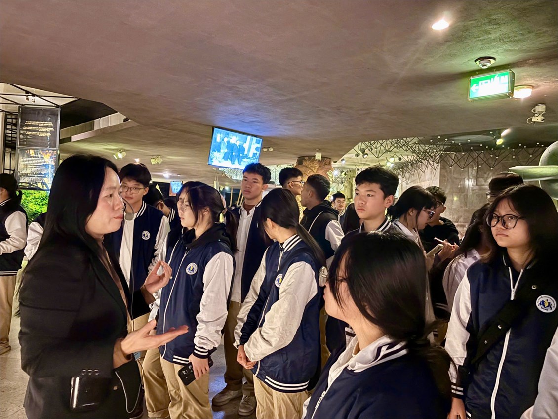 Thực hiện kế hoạch giáo dục năm học 2025 - 2026 và mục tiêu đổi mới hình thức dạy học, chuyến đi trải nghiệm không đơn thuần là một buổi dã ngoại, mà là những tiết học đặc biệt của môn Hoạt động trải nghiệm, hướng nghiệp. Mục đích lớn nhất của hành trình là khơi dậy lòng yêu nước, niềm tự hào dân tộc, giúp các em học sinh thấu hiểu sâu sắc hơn về giá trị của hòa bình, độc lập, tự do. Thay vì chỉ hiểu lịch sử qua sách vở, các em khối 10 và khối 11 đã được mắt thấy, tay chạm những thước phim tư liệu vô giá và những hiện vật sống động của quá khứ. Đây chính là cách nhà trường gắn lý thuyết với thực tiễn, khiến các bài học giáo dục về lịch sử trở nên thấm thía hơn bao giờ hết.