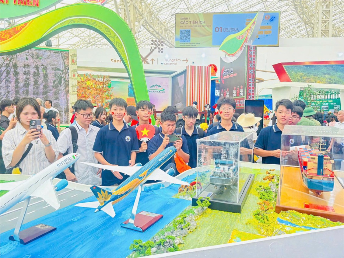 Ngay từ sáng sớm, các em học sinh khối 10 đã tập trung đông đủ trong niềm háo hức, sẵn sàng cho một chuyến đi học tập đầy bổ ích. Tại không gian triển lãm cấp quốc gia, các em đã thực sự choáng ngợp trước những mô hình, tư liệu và hiện vật ấn tượng, tái hiện lại những bước tiến vĩ đại của Việt Nam trên nhiều lĩnh vực.
